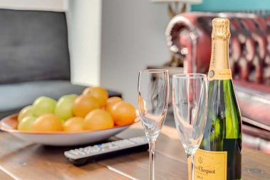 ‘Dolce Gusto’ pod coffee, tea, milk, sugar and biscuits are provided so you can relax straight away.